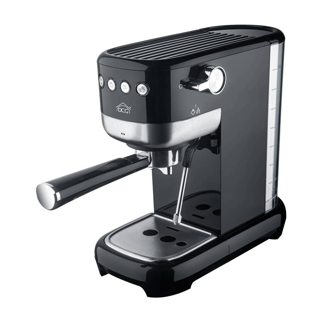 Compatibile con cialde ESE da Ø 44 mm e filtri da 1 e 2 tazze per caffè in polvere. Dotato di pompa da 20 bar, ideale per ottenere un espresso cremoso e ricco di aroma. Tanica d'acqua da 1,4 litri. Cappuccinatore integrato per preparare facilmente cappuccini e altre bevande a base di latte. Dimensioni: cm 40,6 x 14,1 x h. 28,6.