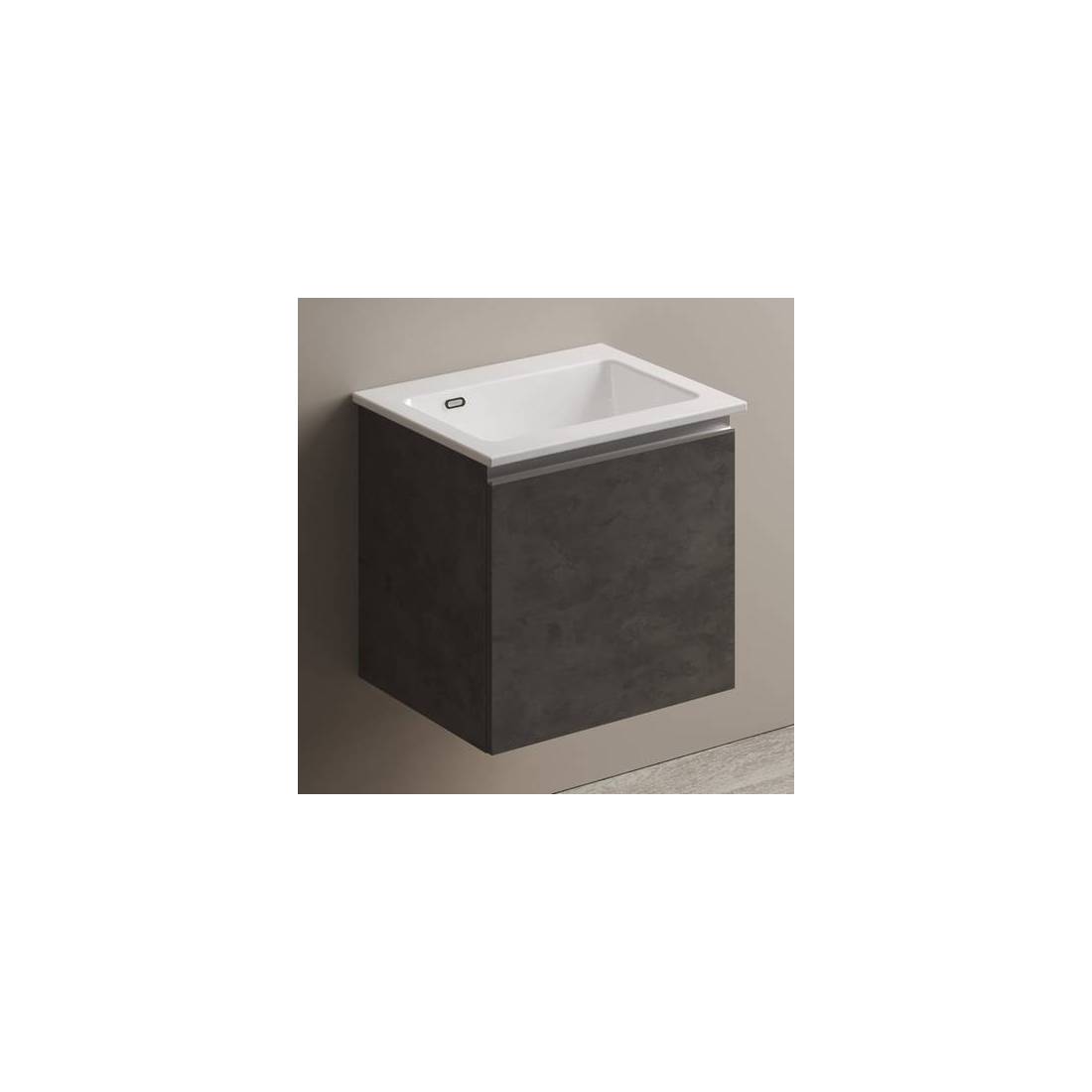 MEUBLE LAVABO SUSPENDU AVEC LAVABO EN CÉRAMIQUE ET POIGNÉE À GORGE Dimensions : Orme de montagne - LxP 60x50 cm