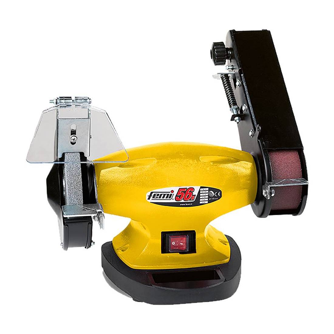 Utensile combinato adatto per smerigliare, pulire, lucidare, levigare metallo e altri materiali. Potente e silenzioso motore a induzione, base di sostegno maggiorata con vaschetta acqua asportabile. Con protezioni antinfortunistiche, conforme alle normative CE. Dotata di mola abrasiva da 150x20x12,7 mm e nastro abrasivo da 50x680 mm. Peso 9 kg, 230V-Hz50.
