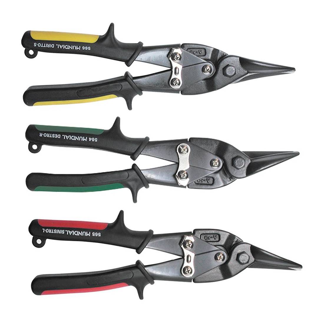 Lama forgiata, corpo in acciaio. Manici ergonomici isolati. Adatta per il taglio di fogli d'alluminio e di lamiera da mm. 1,5 di spessore.