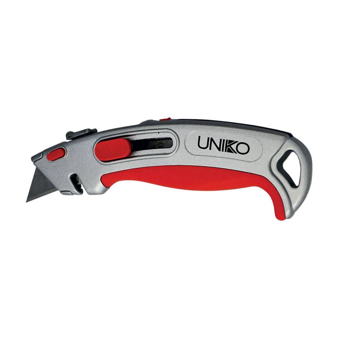 Corpo in metallo. Completo di 2 lame ricambio. Adatto per carta, plastica, gomma.