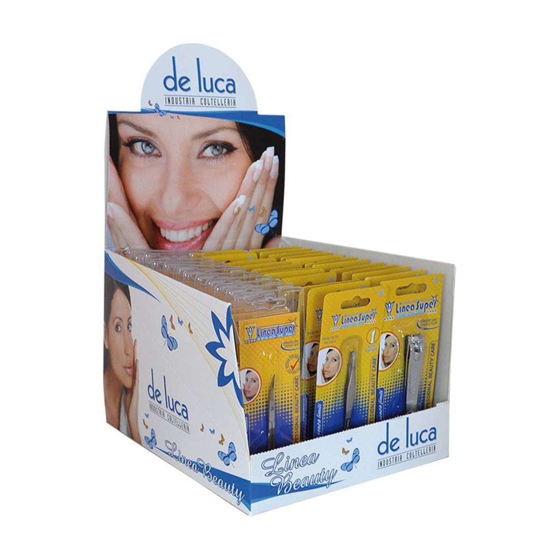 Pratico display assortito. Composizone: 12 forbici manicure curve da 3,5 , 12 pinzette per sopracciglia da 9 cm, 12 tagliaunghie da 8 cm. Dimensioni: cm. 21x26,5xh.38.