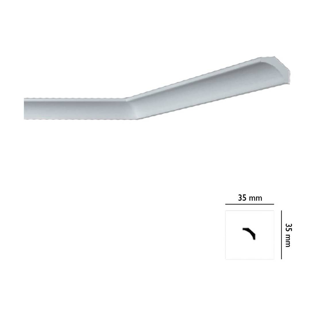 In polistirene. Prodotto che consente la rifintura di qualsiasi ambiente in maniera originale ed elegante. Indicata per valorizzare ulteriormente gli ambienti interni e conferire piacevoli e particolari stili di design. Importante complemento d'arredo, viene realizzata in polistirene estruso. Lunghezza 2 mt.