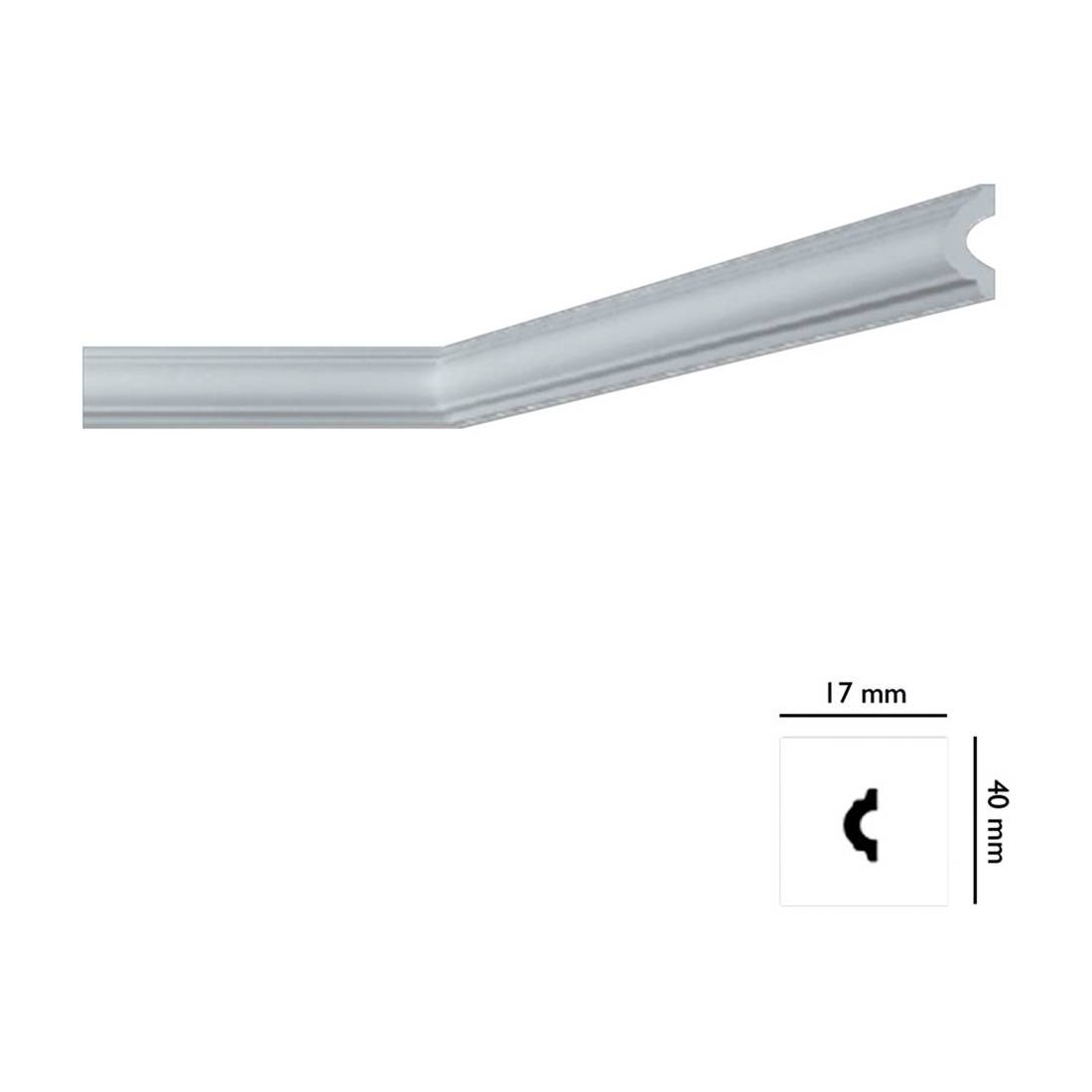 In polistirene. Prodotto che consente la rifintura di qualsiasi ambiente in maniera originale ed elegante. Indicata per valorizzare ulteriormente gli ambienti interni e conferire piacevoli e particolari stili di design. Importante complemento d'arredo, viene realizzata in polistirene estruso. Lunghezza 2 mt.