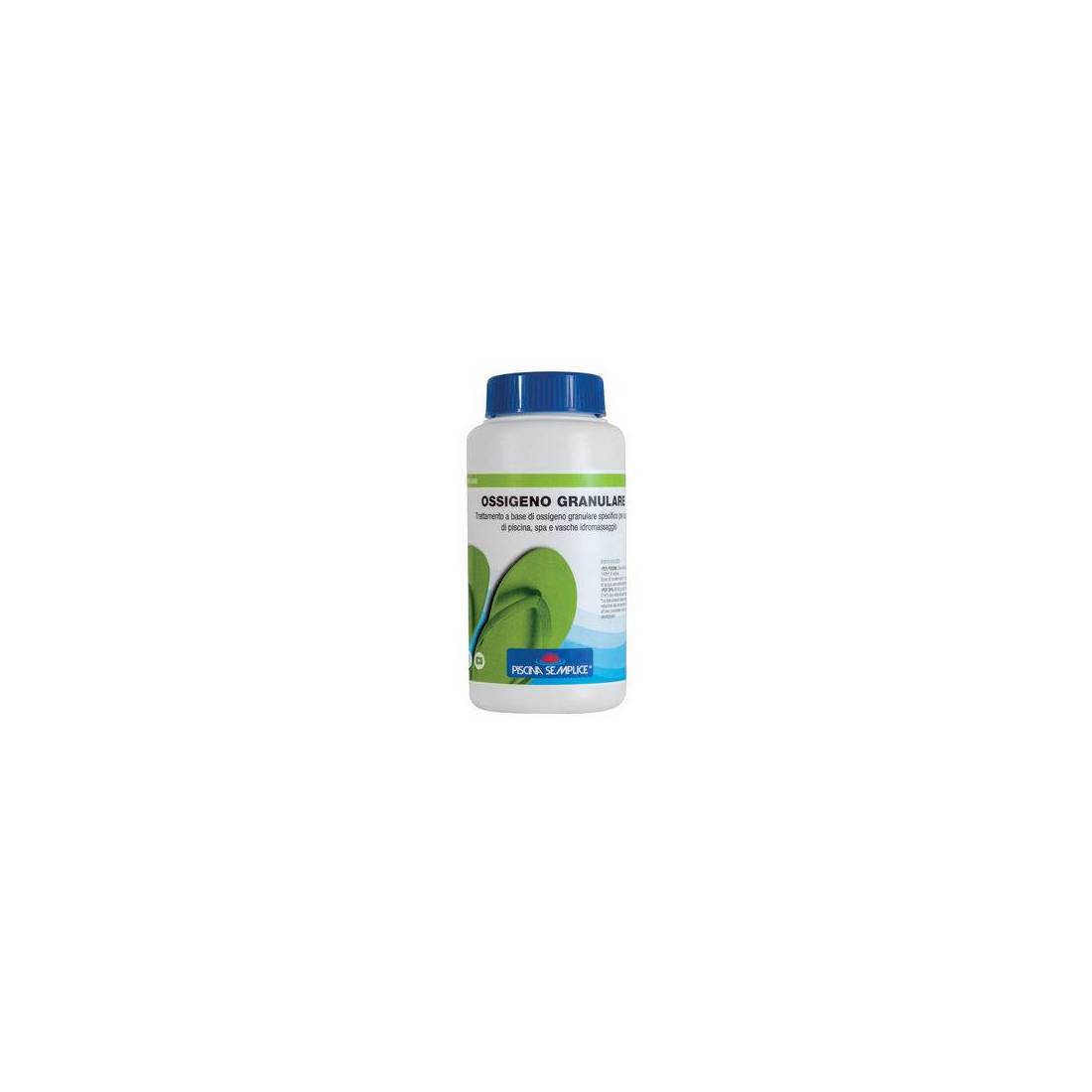 Traitement à base d'oxygène granulaire spécifique pour le traitement de l'eau des piscines, spas et bains à remous. Traitement initial : environ 200 grammes d'oxygène granulaire pour 10 mètres cubes d'eau (2 kg pour 100 mètres cubes). Traitement d'entretien : environ 100 grammes pour 10 mètres cubes d'eau (1 kg pour 100 mètres cubes) à ajouter une fois par semaine, de préférence tard dans la soirée et en l'absence de baigneurs dans l'eau. (DianFlex) Contenance : 1 kg