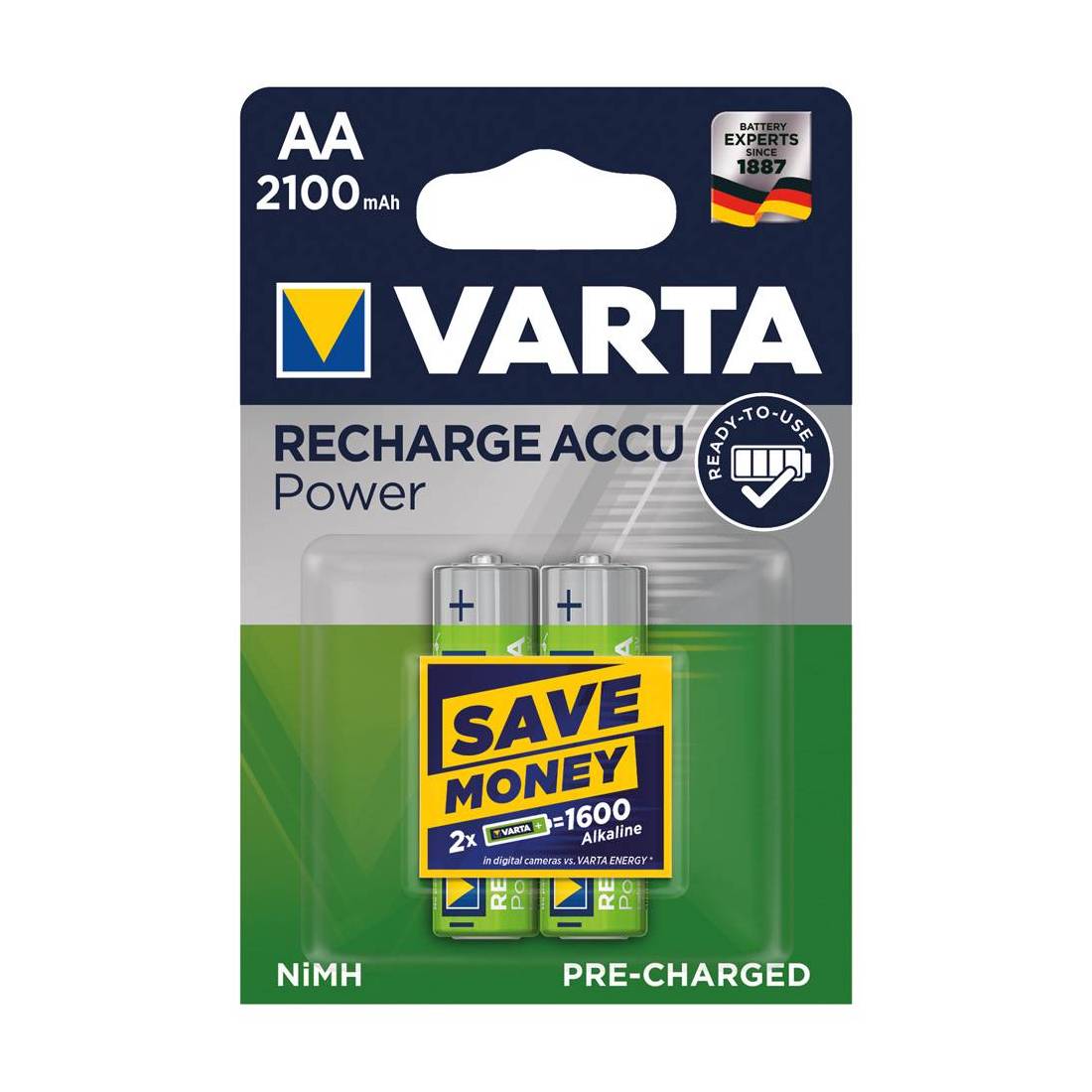 Nichel-metallo idruro. Capacità 2100 mAh.