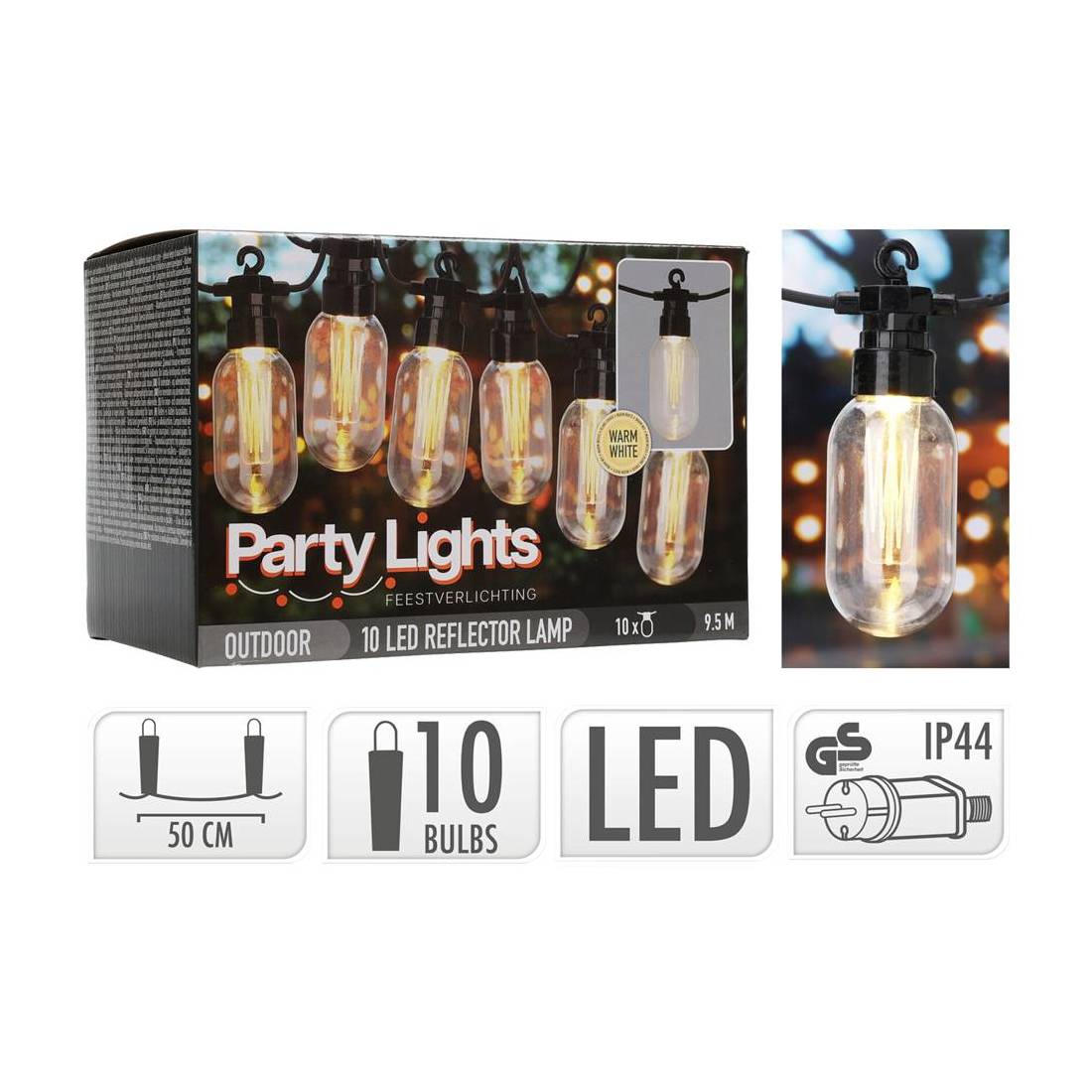 LUMINARIA 'PARTY LIGHTS' cavo mt.9,5 - 10 lampade