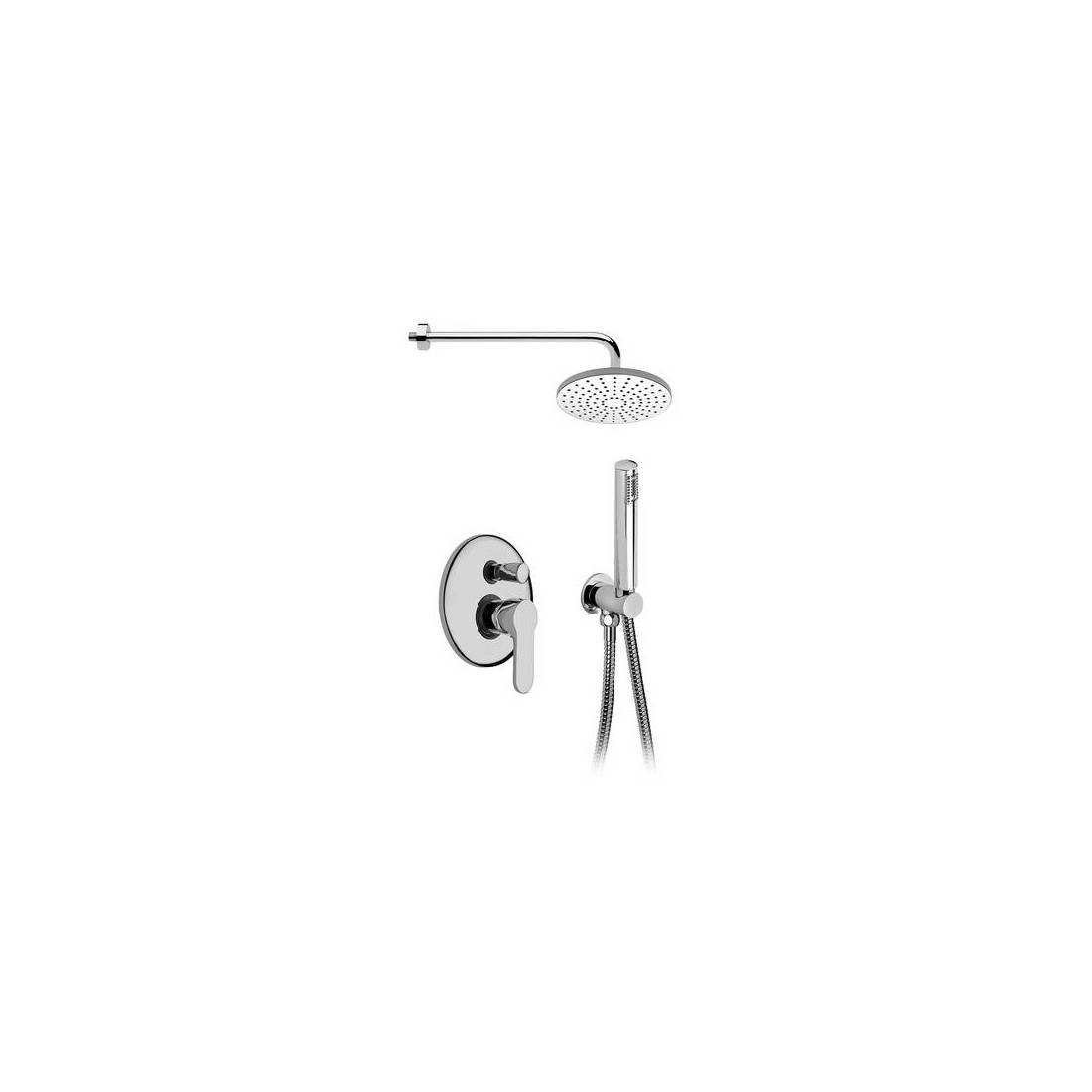 Kit douche encastrable complet comprenant : mitigeur encastrable deux voies. Bras de douche 30 cm. Pomme de douche ABS D. 20 cm avec buses anti-calcaire. Prise d'eau en laiton avec support de douche. Douche mono-jet ABS avec buses anti-calcaire. Flexible en acier inoxydable 150 cm (DianFlex). Dimensions : chrome.