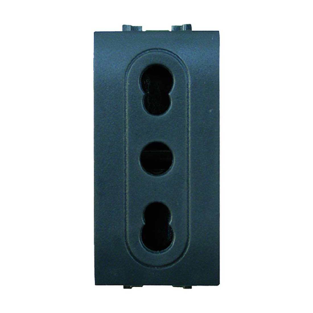 Presa bivalente di sicurezza 2P+T. Tipo P11/17. 10/16A 250V. Profondità=29 mm. Compatibile con tutta la serie Flexì (Life, Elite, Pyramid, Ellipse, Plain e Brio) e con le serie Bticino (Living int., light, living light, luna). Certificazione IMQ.