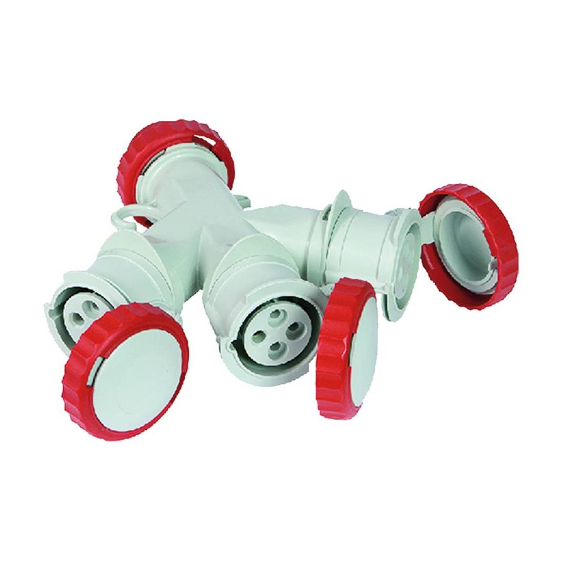 Spina: 3P + T 16A CEE rossa - IP67.Presa: 3x3P + T 16A rossa - IP67.