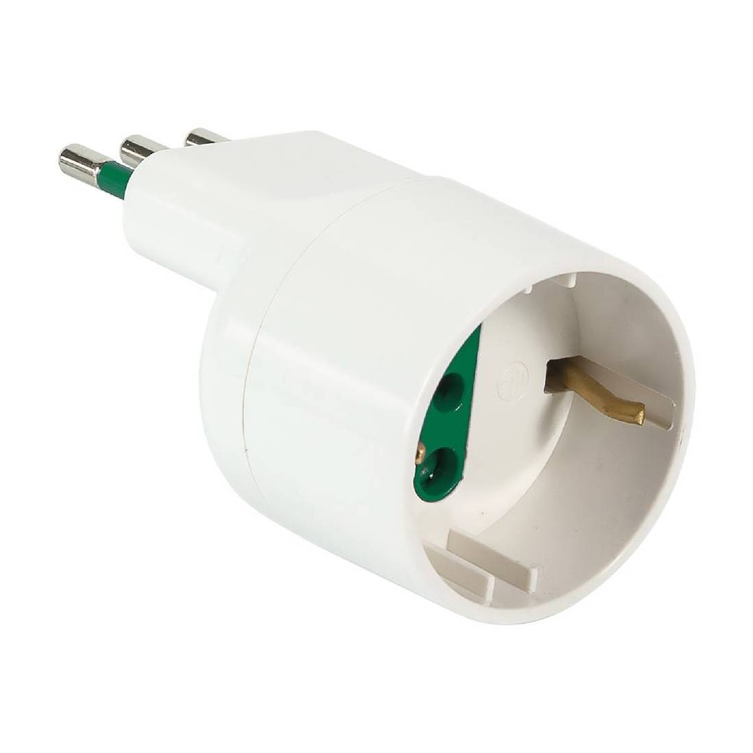 ADATTATORE SINGOLO SPINA ASIMMETRICA 'SALVASPAZIO' spina 2P + T 10A - bianco