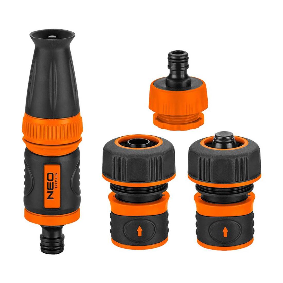 Contenuto: lancia a spruzzo regolabile, presa a rubinetto 3/4', raccordo da 3/4', raccordo da 3/4' aquastop.