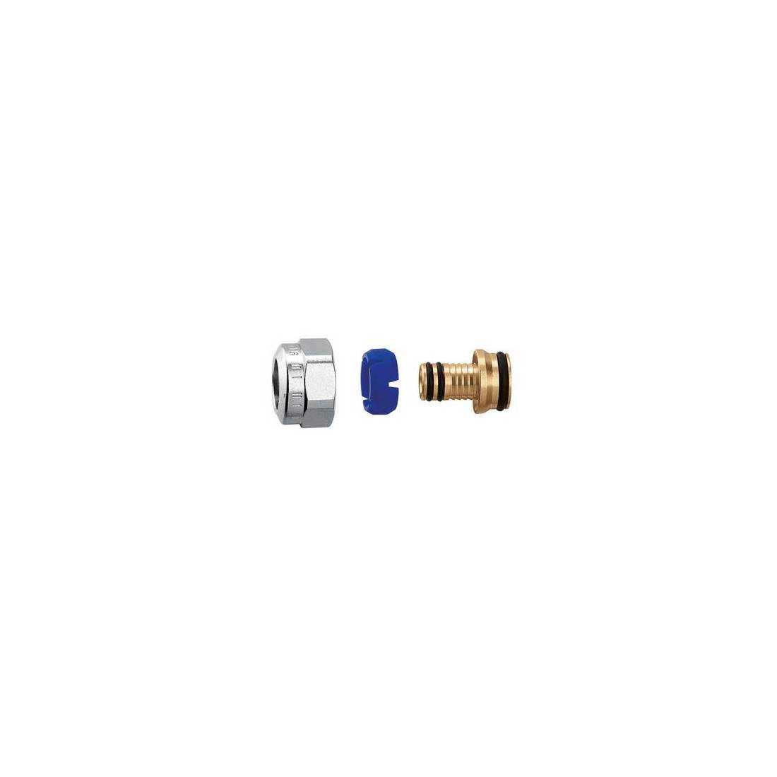 Raccord pour tubes multicouches à usage continu à haute température. Pmax d'usage : 10 bars. Plage de température : 0-95 °C. Chromé. (DianFlex) Dimensions : D. 14x2 - 23 p. 1,5