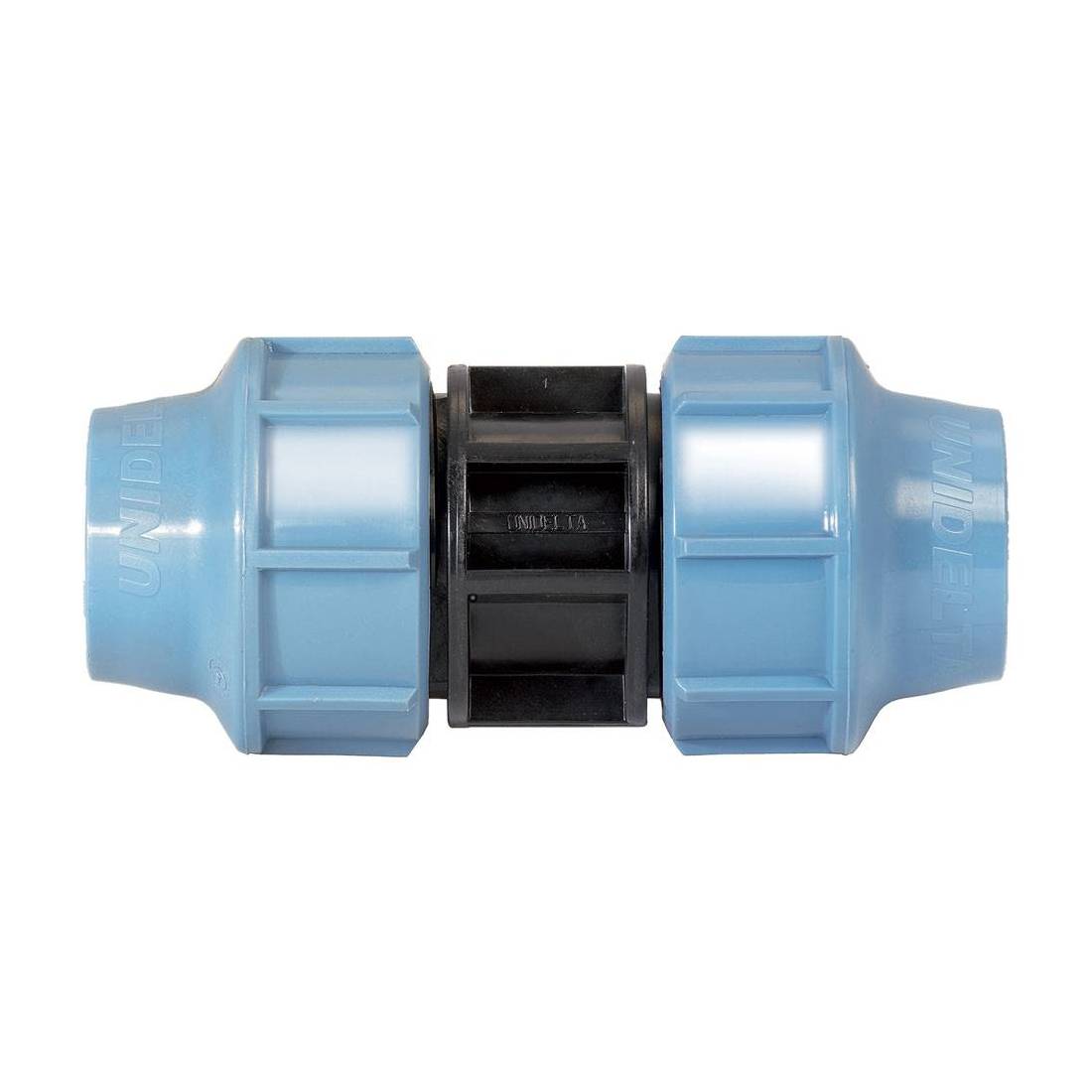 In polipropilene PN16. A compressione, conforme alle vigenti normative UNI-ISO-DIN-AFNOR e alle norme per convogliamento d'acqua potabile e fluidi alimentari.