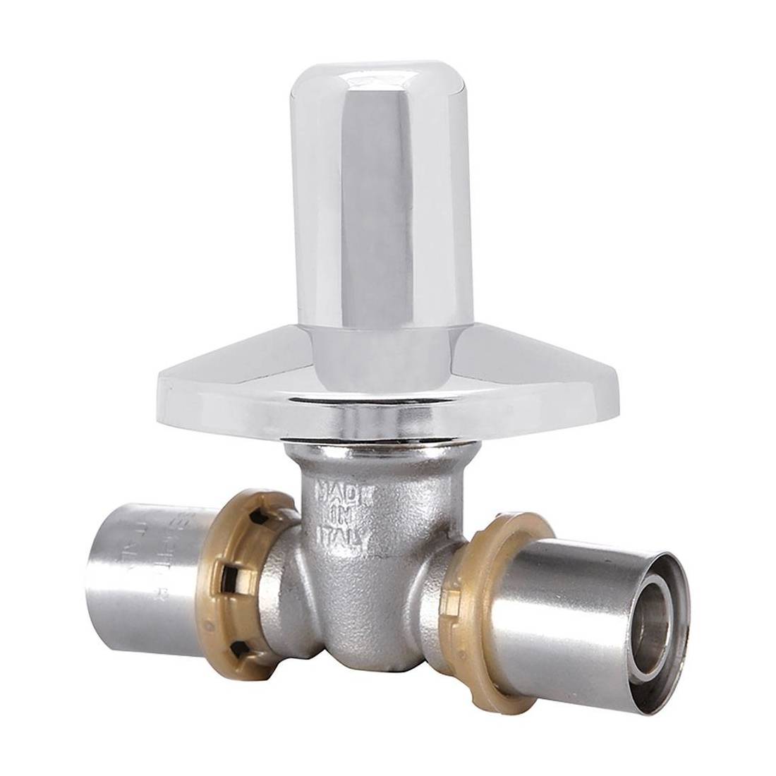 A passaggio totale. Vitone con otturatore e guarnizione conica in EPDM. Per tubo multistrato. Pressatura con ganasce di tipo 'TH'.