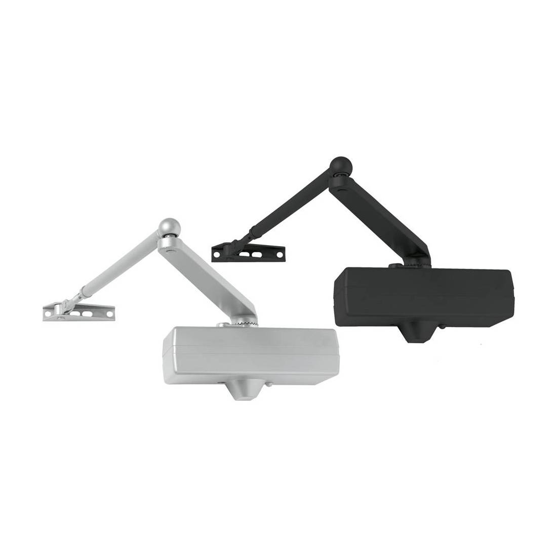 Forza variabile EN 2-3-4-5. Unico corpo in ghisa, custodia di finitura in ABS ad alta resistenza. Meccanismo a pignone e cremagliera con braccio a compasso. Fermaporta integrato nel corpo regolabile tra i 70°-140°. Velocità di chiusura regolabile tra 180° e 0°, colpo finale regolabile tra 15° e 0° tramite tenditore del braccio. Utilizzabile su porte destre e sinistre. Certificato secondo le normative EN 1154. Dimensioni: mm. 182x71x71.