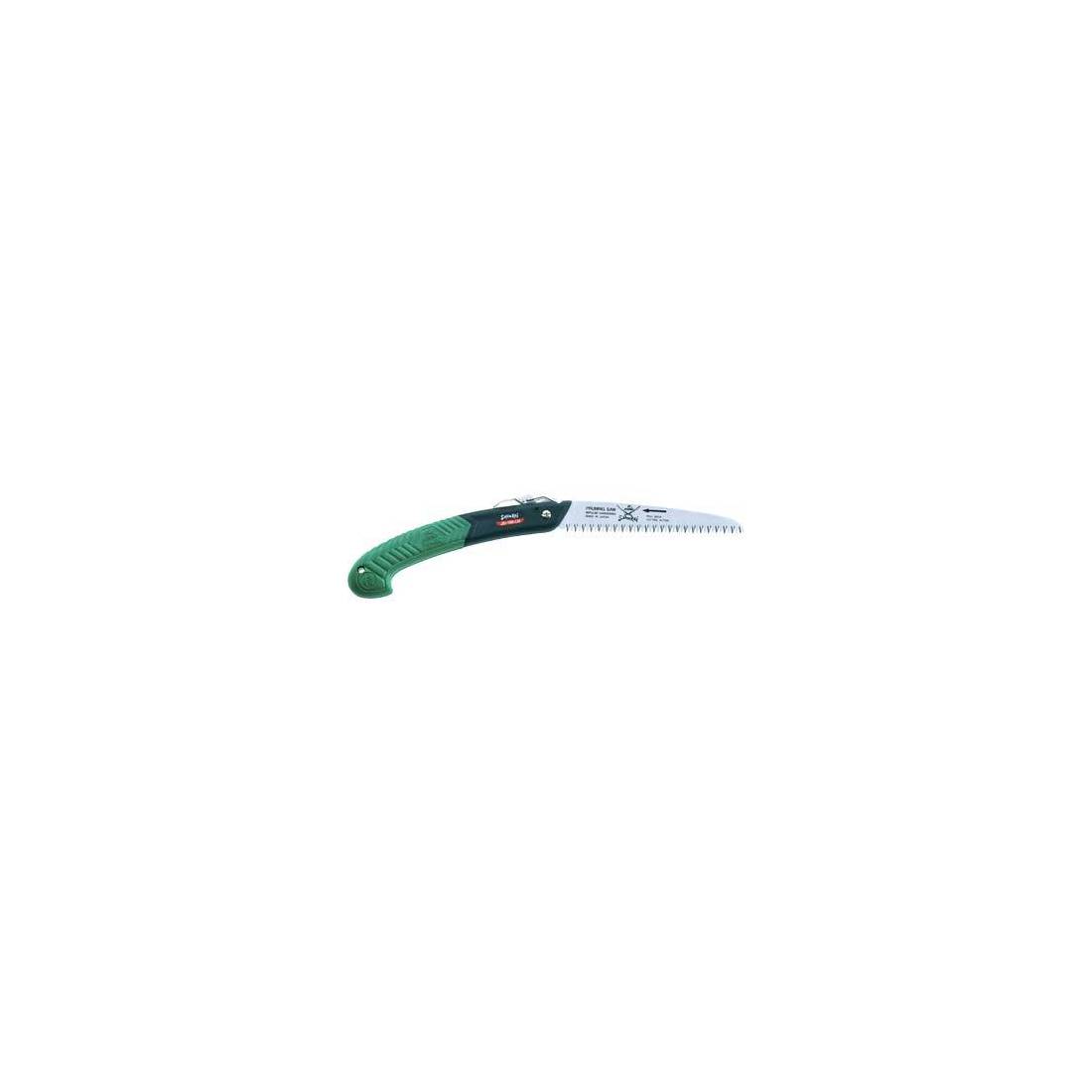 Lame en acier chromé, rectifiée concave pour limiter les frottements. Dents à pas de 4 mm, triple affûtage et trempées par impulsions. Pliante avec fermeture à levier. Manche ergonomique Power Grip. Idéale pour couper sous la hauteur des épaules.