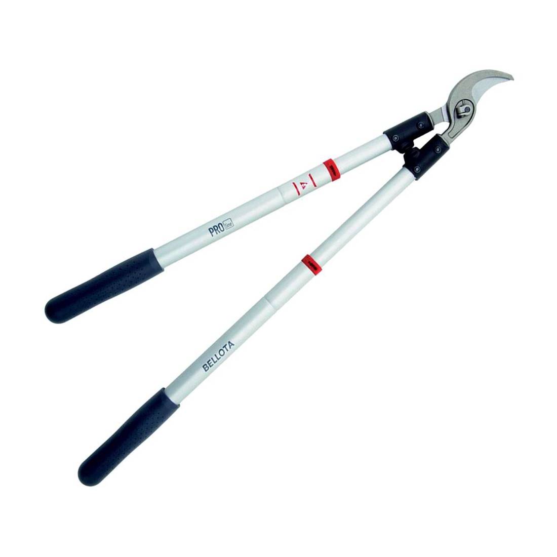 Con manico telescopico in alluminio. Impugnatura ergonomica in gomma. Con ammortizzatori di impatto. Lame con trattamento antiaderente resistenti alla ruggine. Adatto per la potatura di rami verdi e molto spessi.
