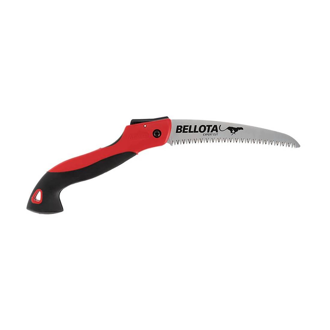 Pieghevole. Chiusura a pulsante. Lama curva e conica e denti temprati ad impulso. Manico in bimateriale che consente il massimo adattamento alla mano ed evita scivolamenti.