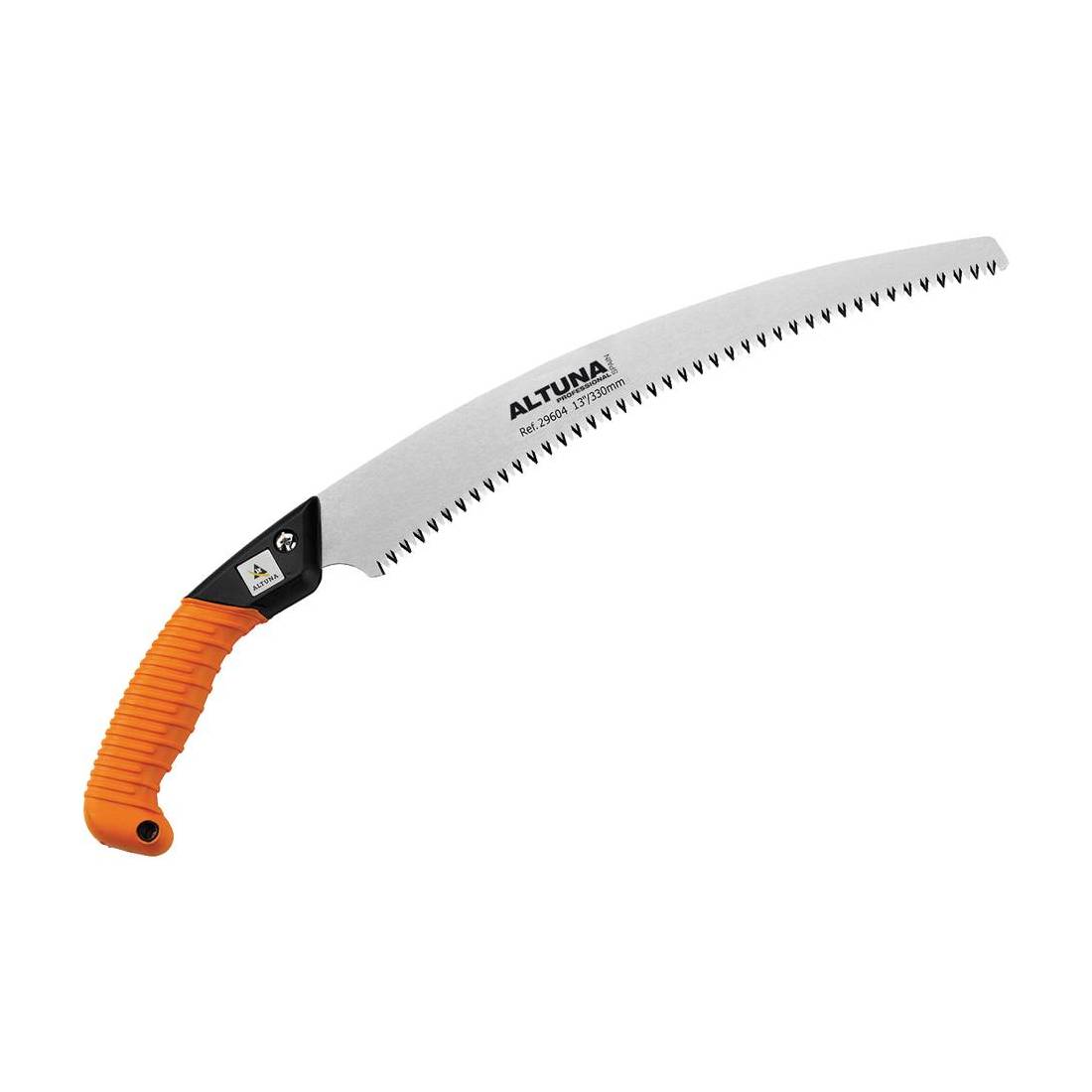 Strumento ultra leggero eprofessionale, dotato di una lama curva da 240 mm con dentatura giapponese. Ideale per tagli precisi e puliti su rami e arbusti. La lama è realizzata in acciaio cromato, è inoltre dotato di impugnatura ergonomica in alluminio con rivestimento antiscivolo (per una presa sicura e confortevole durante l'uso). Fornito con un pratico fodero per il trasporto e la conservazione in sicurezza.