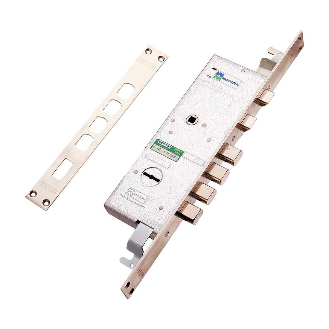 Reversibile, a doppia mappa. Due mandate, mezzo giro elettrico azionato da chiave e maniglia, quadro maniglia Q8. Quattro chiavistelli Ø 20x14 mm con corsa mm 18. Frontale mm 376x30. Corsa aste mm 17. Senza aste.
