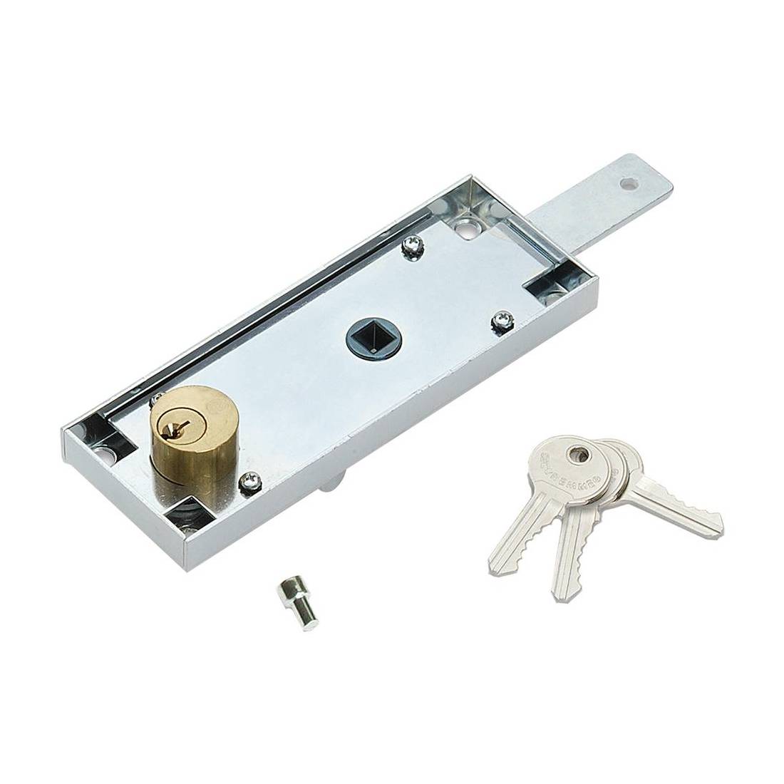 Cilindro tondo Ø 25 mm. Ad un punto di chiusura ed una mandata. Scatola mm 56x178. Quadro maniglia 8 mm. Finitura zincata bianca.