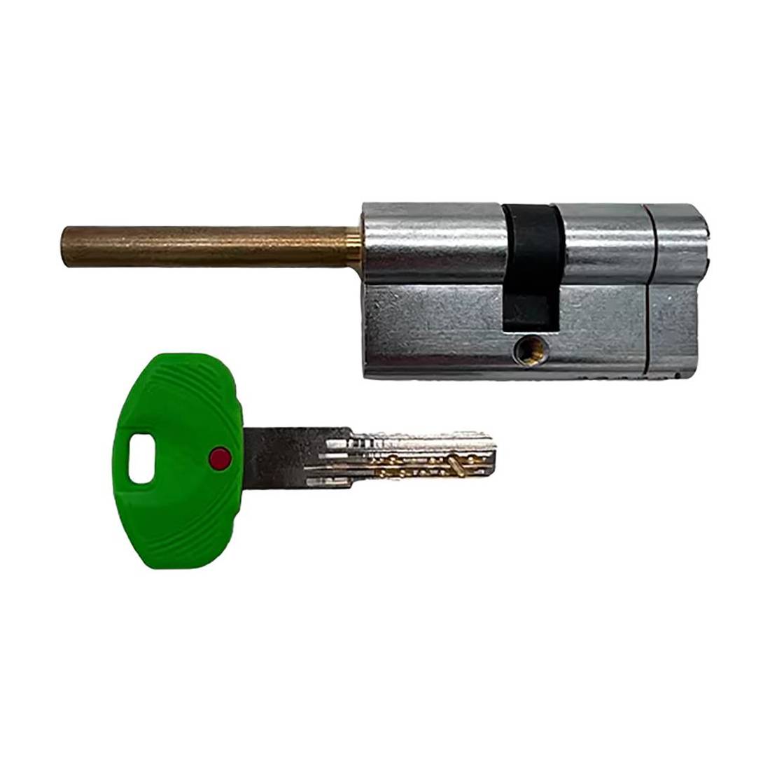 Profilo europeo, chiave punzonata in ottone. A 11 spine, leva DIN 30 per elevata resistenza alla spinta. Perno per pomolo interno da Ø 8 mm. Anti spezzamento, anti estrazione rotore, spine anti trapano, anti manipolazione. Duplicazione chiave controllata. Dotazione cinque chiavi, chiave cantiere, carta di proprieta' numerata, vite di fissaggio. Testato e certificato EN 1303:2015.