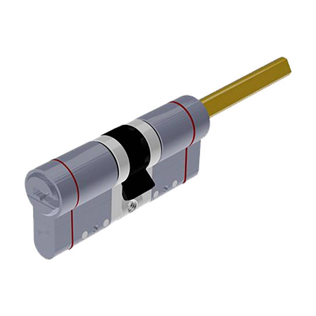 Profilo europeo, chiavi in ottone. A 10 perni (6 attivi + 4 passivi) , leva DIN 30 per elevata resistenza alla spinta. Sistema modulare con barra in acciaio inox Ø 6 mm per alta resistenza allo strappo. Triplo sistema di cifratura meccanico e pista a 4 elementi mobili attivi. Perno per pomolo interno da Ø 8 mm. Anti estrazione rotore, spine anti trapano, anti manipolazione, anti estrazione rotore. Dotazione cinque chiavi, 1 +1 chiave cantiere, carta di proprieta' numerata, vite di fissaggio. Testato e certificato EN 1303:2015.