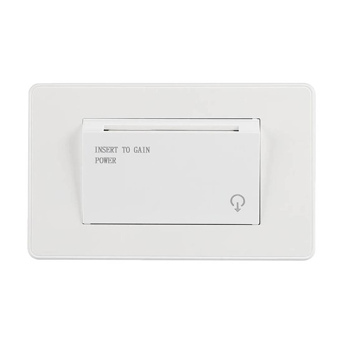 Supporto per l'alimentazione di camera di hotel e bed breakfast. Quando il badge viene inserito nella tasca, si attiva l'elettricita' nella camera. Quando il badge viene estratto dalla tasca, si ha l'interruzione dell'alimentazione dopo 15-20 secondi. A risparmio energetico, per scatola civile '503'. Tessere utilizzabili: universali 125Mhz.