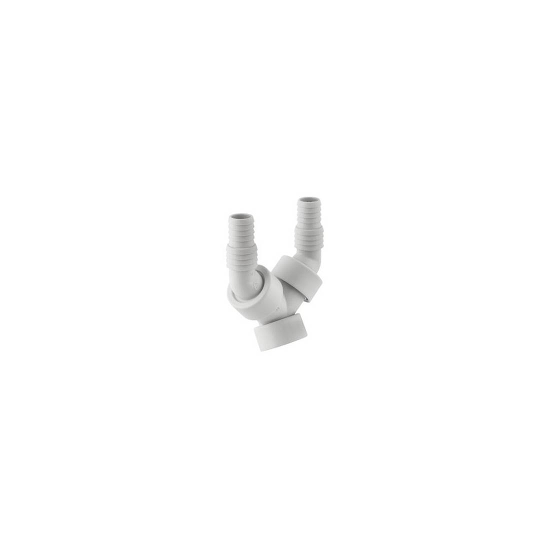 Raccord flexible à double coude Geberit pour le raccordement de lave-linge et lave-vaisselle avec 2 clapets anti-retour et bouchon aveugle pour raccordement G 1. Matériau synthétique. Raccord flexible diam. 19-23 mm. Entraxe des raccords flexibles 8,3 cm (DianFlex). Taille : G 1".