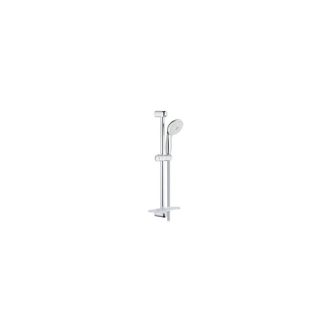 FACTORYCODE : 27600 ; Composé de : barre de douche 600 mm, douchette à 3 jets avec système anti-calcaire, flexible 1750 mm, tablette porte-objets. (DianFlex) Dimensions : Chrome