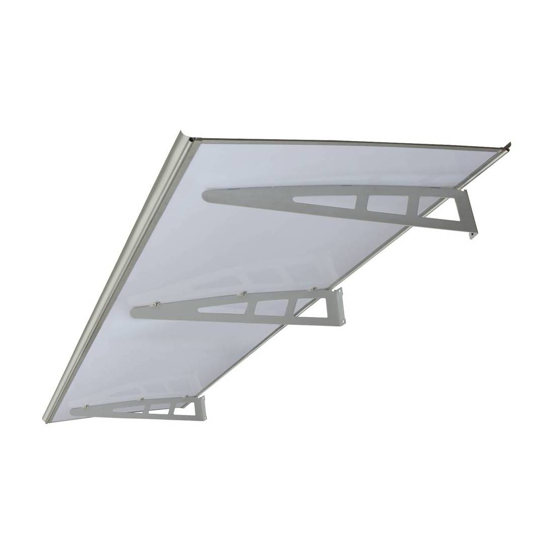 Pensilina da esterno in policarbonato trasparente (spessore pannello 2,7 mm) con struttura in alluminio, leggero, compatto e resistente. Ideale per proteggere ingressi, balconi o finestre. Modulabile. Dimensioni indicate in: profondità per lunghezza.