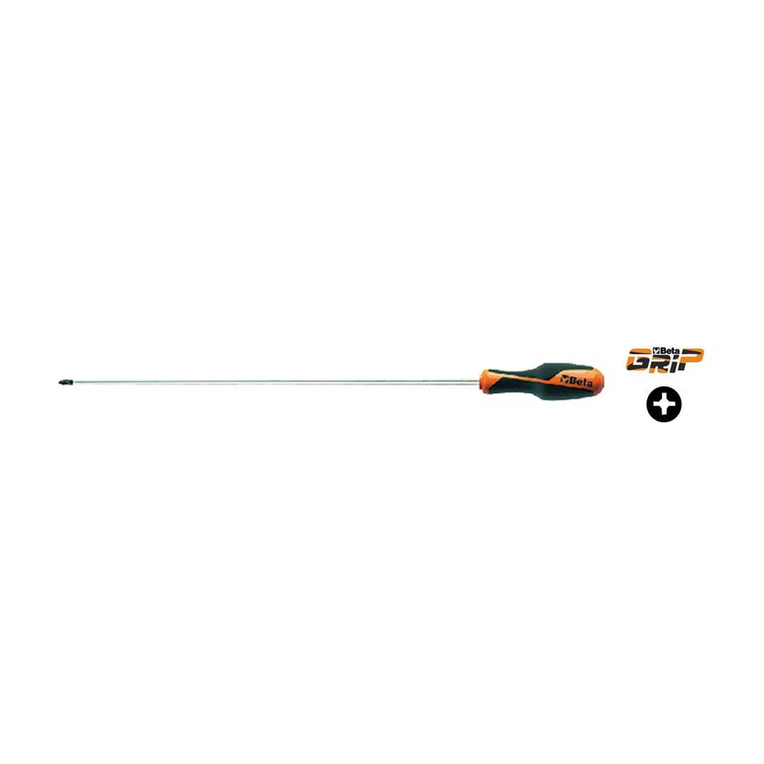 Tipo lungo, per viti senza testa. Impugnatura bimateriale. La punta è priva di cromatura per garantire un perfetto accoppiamento con la vite. Esecuzione cromata, punta nera. A norma UNI 10562 - ISO 2380 - DIN 5265.