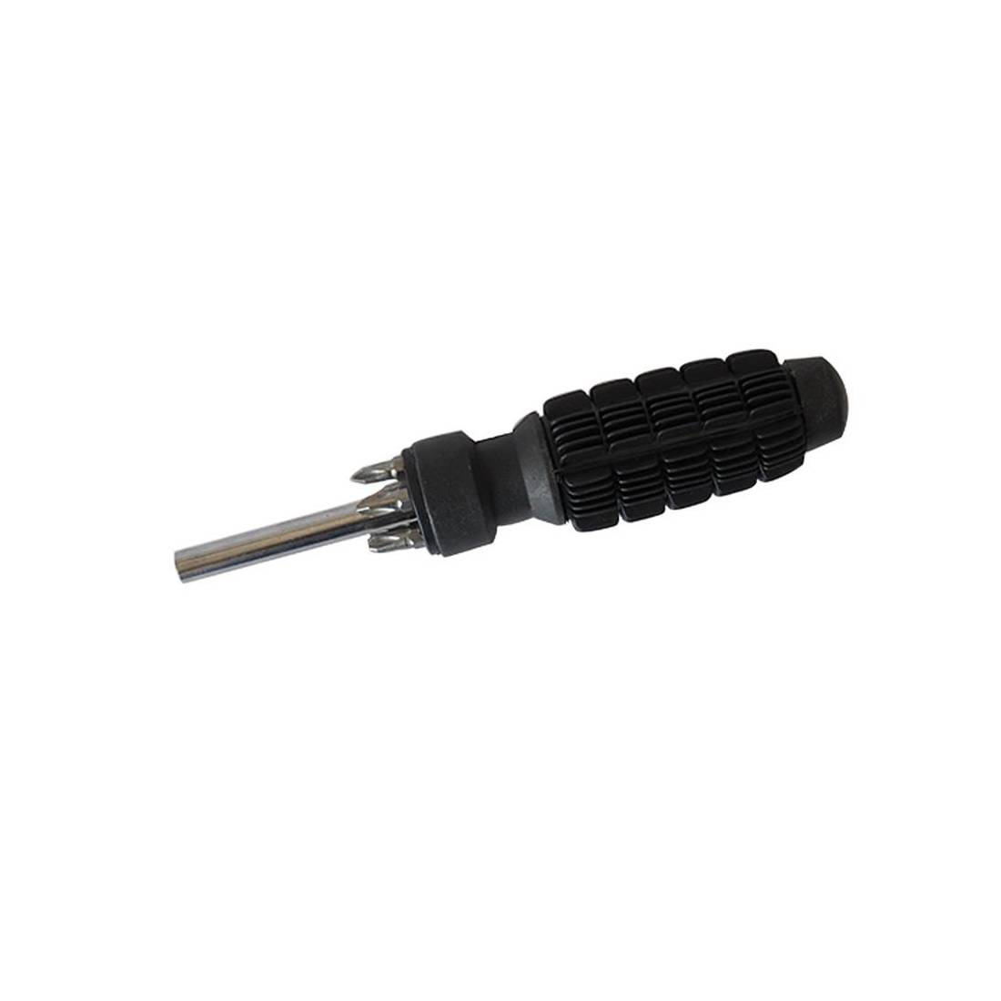 Con manico antiscivolo. Completo di 2 punte a taglio e 3 punte a croce da 25 mm. In blister.