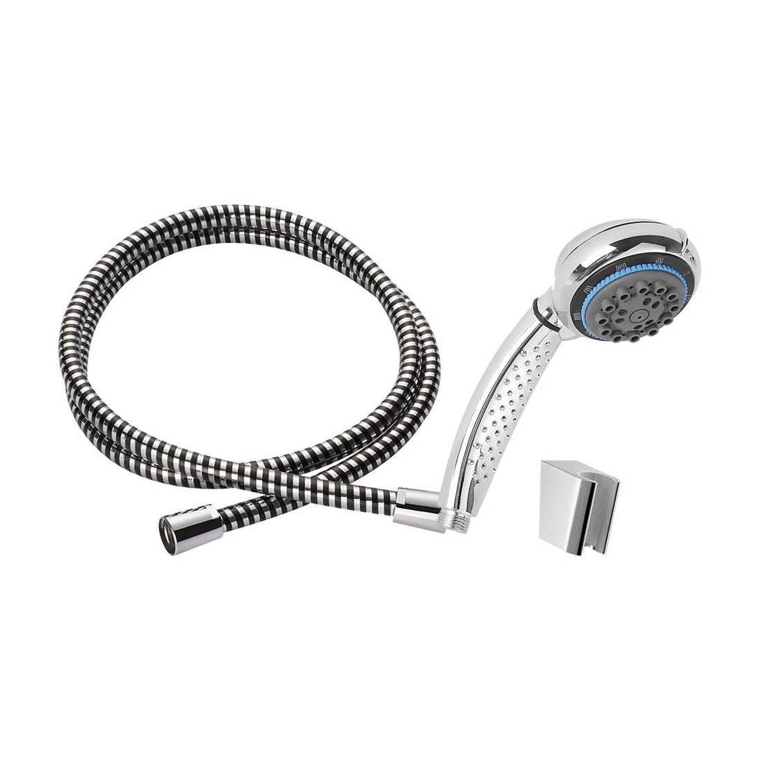 Anticalcare. In ABS, cromata. Tubo flessibile da 150 cm di lunghezza. Supporto da parete in ABS cromato. Blister.