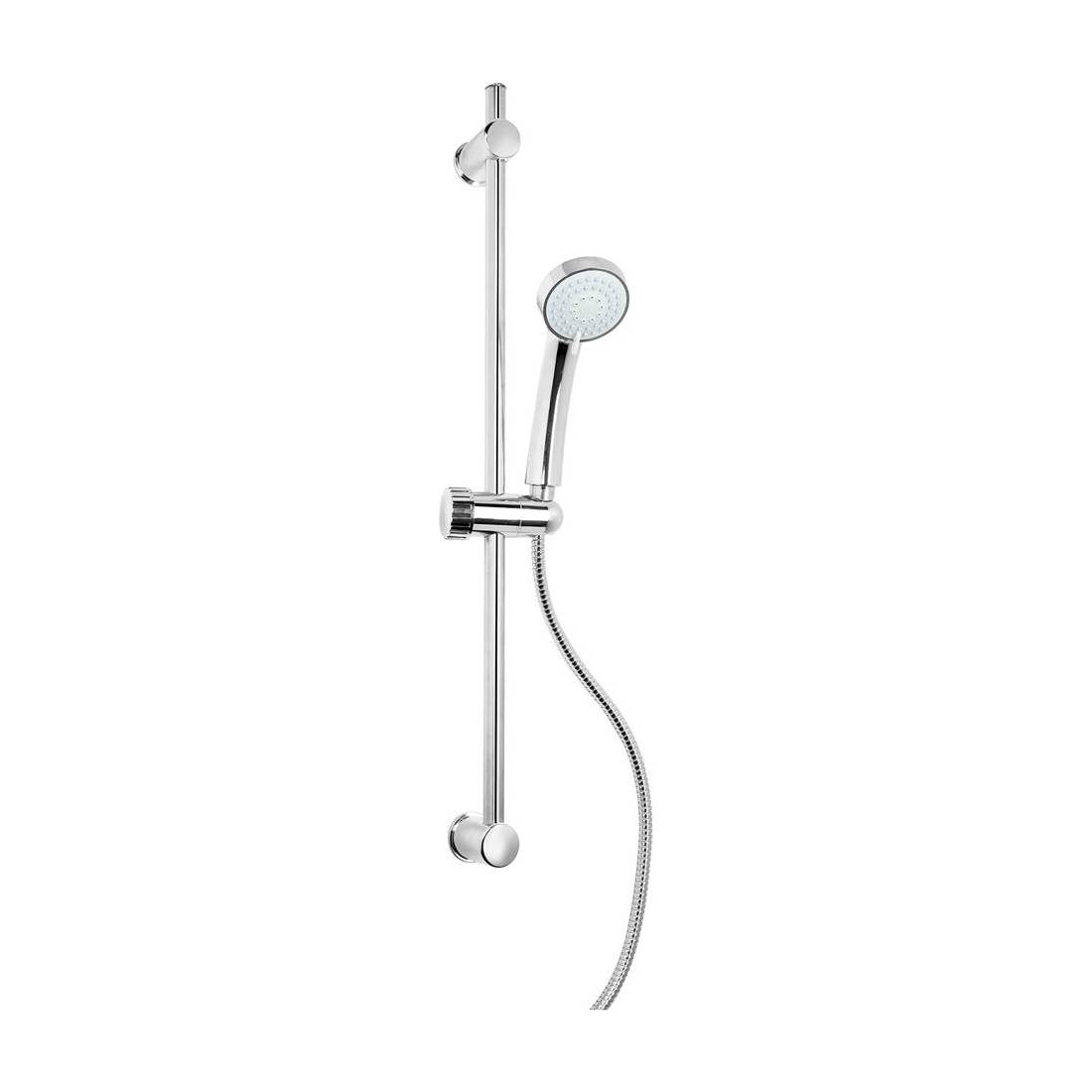 Interasse regolabile in acciaio inox cromato. Flessibile in acciaio inox con doppia aggraffatura da 150 cm. Doccetta in abs a tre getti anticalcare Ø 7 cm. In cartone.