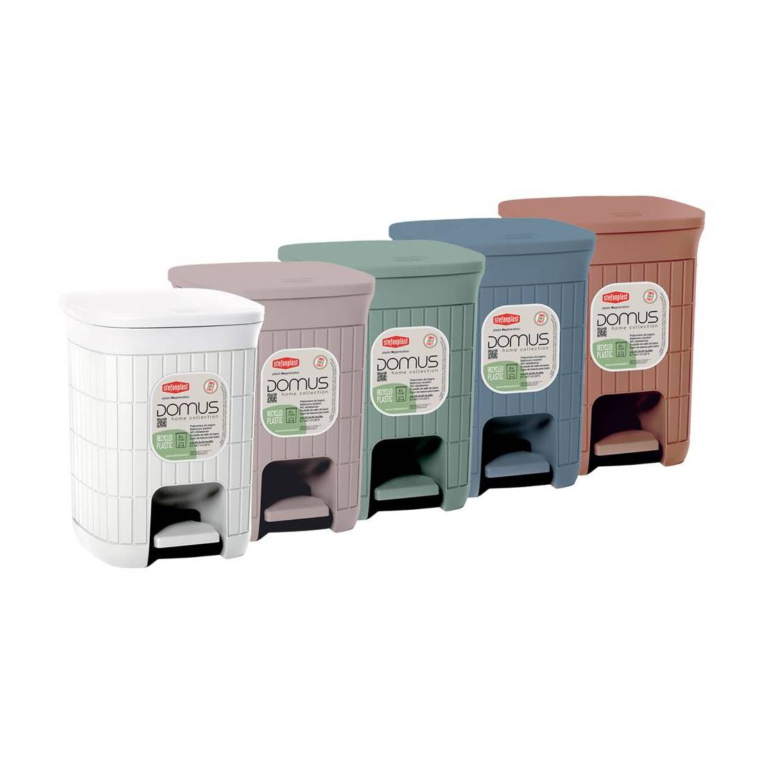 In plastica rigenerata. La superficie con trama decorativa dona un tocco di stile al bagno, trasformando un oggetto d’uso quotidiano in un vero complemento d’arredo. Il coperchio con apertura a pedale assicura la massima igiene, evitando il contatto diretto con le mani. Grazie alle dimensioni compatte, si adatta perfettamente anche agli spazi più piccoli, senza rinunciare alla funzionalità. Dimensioni cm. 20,5x20,5xh.28 lt. 6.