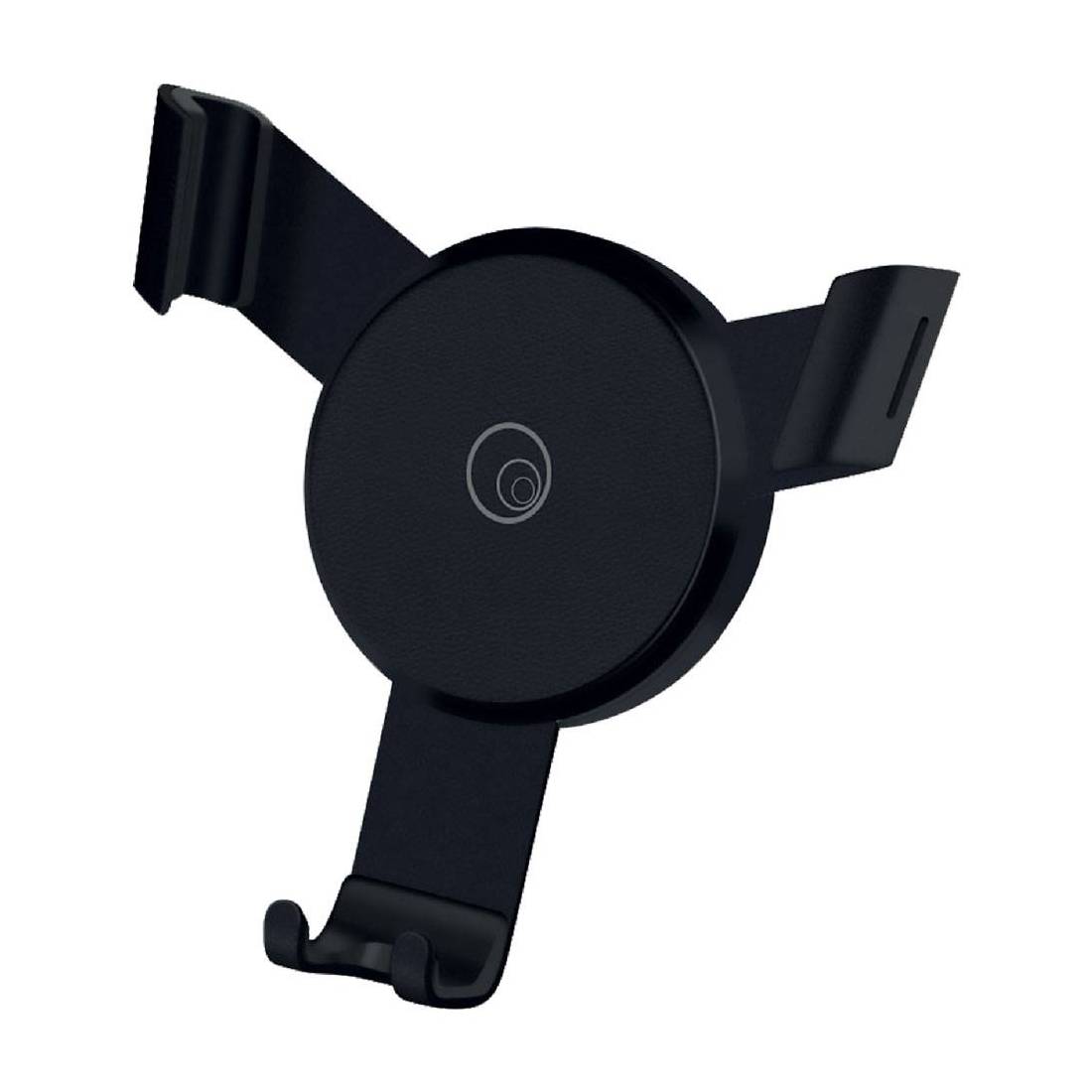 Tassello posteriore a 'pinza' in acciaio rivestito in silicone spesso che si applica saldamente alle alette dei bocchettoni d'aria. Il meccanismo di gravità interno, blocca lo smartphone quando viene inserito. Quando viene sollevato, poi, i tre bracci lo rilasciano in modo da consentire le operazioni con una mano e rendere più sicura la guida. Non compatibile con bocchettoni rotondi e/o non regolari.