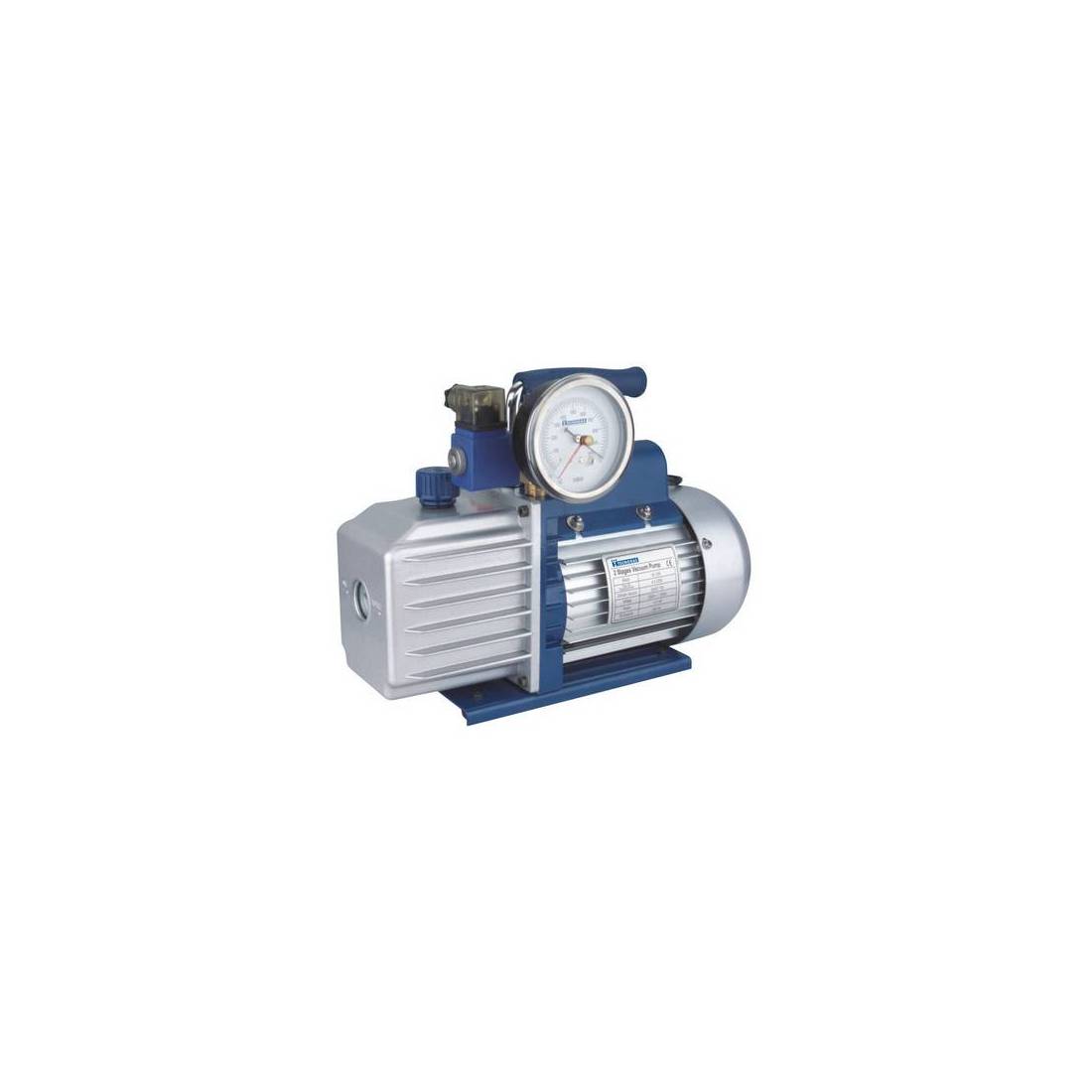 Pompa bistadio professionale mod. TGAS-DS1, di alta affidabilità, dotata di interruttore ON-OFF, indicatore di livello olio, cavo di alimentazione con spina e maniglia ergonomica di trasporto. Dotata di elettrovalvola e vacuometro. Utilizzabile in tutti gli impianti dove necessita effettuare un'operazione di vuoto. Dimensioni: 308x124x230 LxPxH. Peso 7,5 kg. Portata 42 l/min. Vuoto finale: 25 micron. Tensione 230V -50/60 Hz. Olio 200 ml.(DianFlex) Misura: 42 l/min