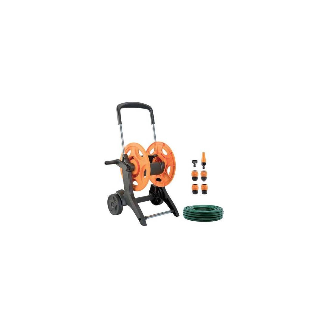 Curato nel design, stabile e maneggevole. Facile da montare, robusto e di ottimo rapporto qualità-prezzo. Capacità Mt. 60 di tubo da 1/2". Manico ergonomico. Completo di Mt. 20 di tubo retinato da 1/2", presa rubinetto 3/4", raccordi portagomma da 1/2"-5/8", lancia regolabile. Peso Kg. 4,23. Dimensioni: altezza Cm. 80, profondità Cm. 50, larghezza Cm. 36.