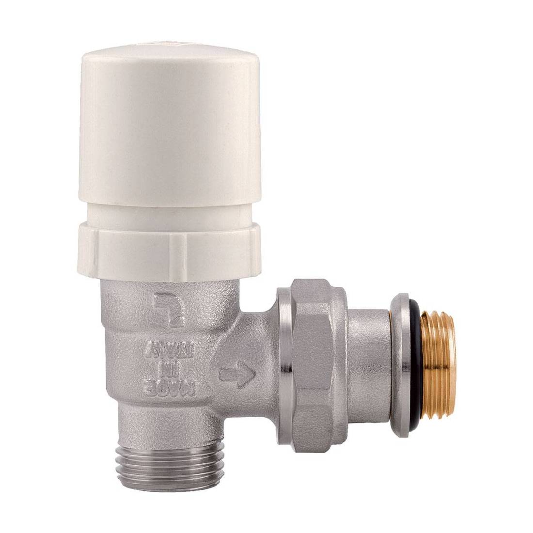 VALVOLA AD ANGOLO TERMOSTATIZZABILE PER RADIATORI 1/2 M - con cappuccio