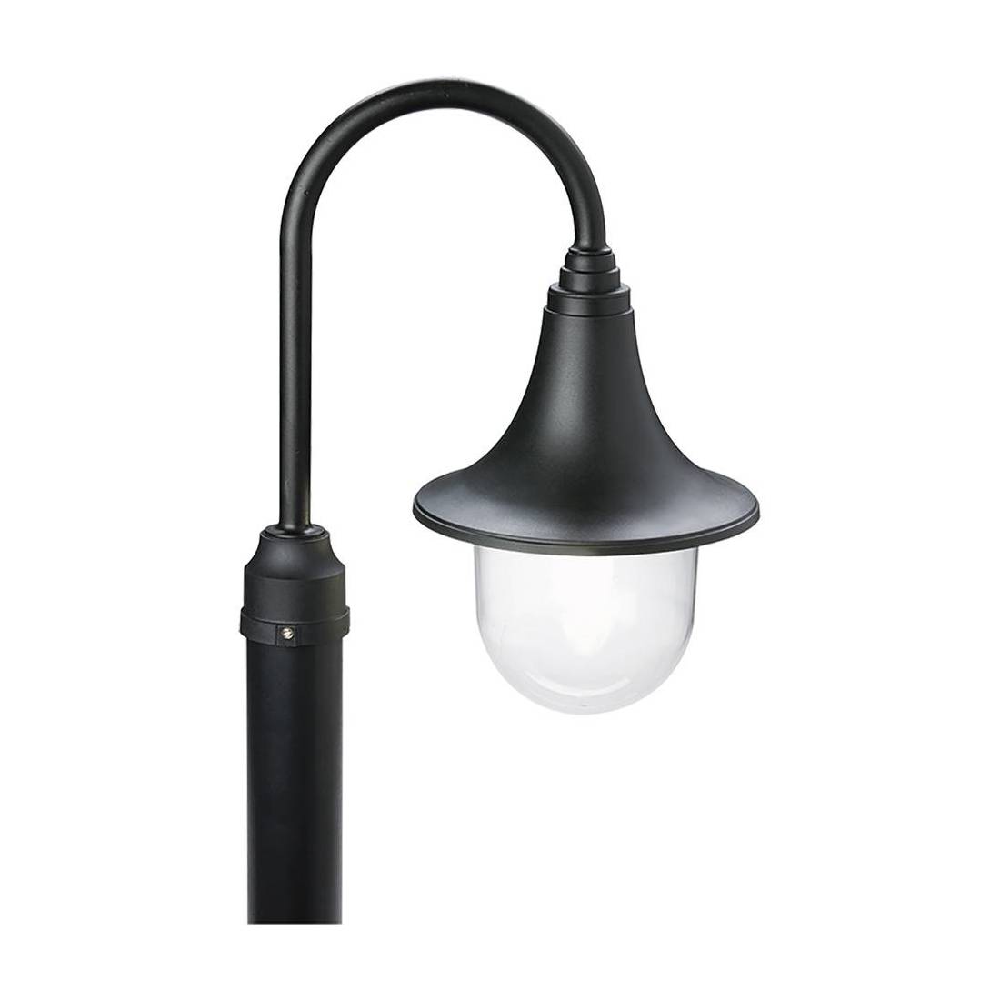 Struttura in termoplastico, diffusore in termoplastico trasparente. Parabola riflettente in alluminio. Adatta per lampade ad incandescenza e a risparmio energetico. Attacco E27, IP43. Attacco a colonna da Ø 60 mm. Solo corpo lanterna, palo optional.