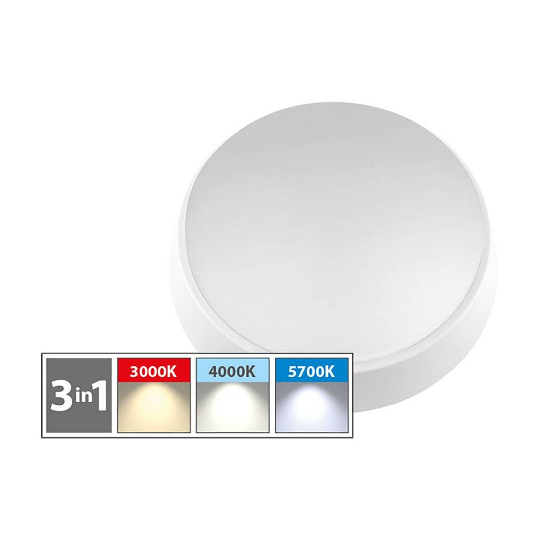 Per esterno, struttura e diffusore in materiale termoplastico, IP54. Temperatura colore Tri-White: 3000K - 4000K - 5700K. Innesco istantaneo, tensione 220-240V, frequenza 50/60 Hz. Non dimmerabile. CE RoHS. Dimensione 180x68 mm.