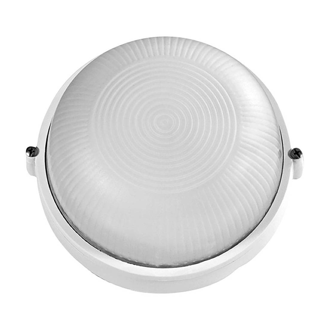 Corpo in alluminio, vetro satinato. Design classico e semplice, applicabile sia a parete che a soffitto. Indicata per qualsiasi lampadina a led, incandescenza o a risparmio energetico max 60 W. Adatta per uso esterno, grado di protezione IP44. Dimensioni: Ø 19x9.2 cm. Colore bianco.