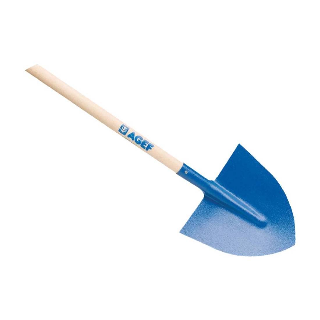 Mini badile. Testa in acciaio verniciato, bucciato (misure: 18x21,5x138 cm). Con manico in legno di faggio (misure: diametro 26 mm x lunghezza 120 cm). Ideale per piccoli lavori di giardinaggio.