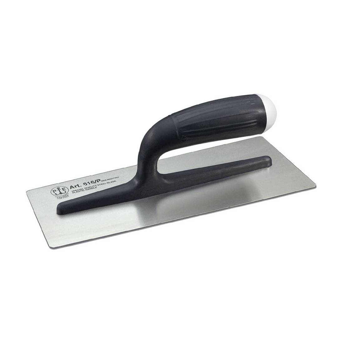 Base in inox spessore 0,5 mm, manico e supporto in plastica rinforzata FRP. Saldato, angoli arrotondati.