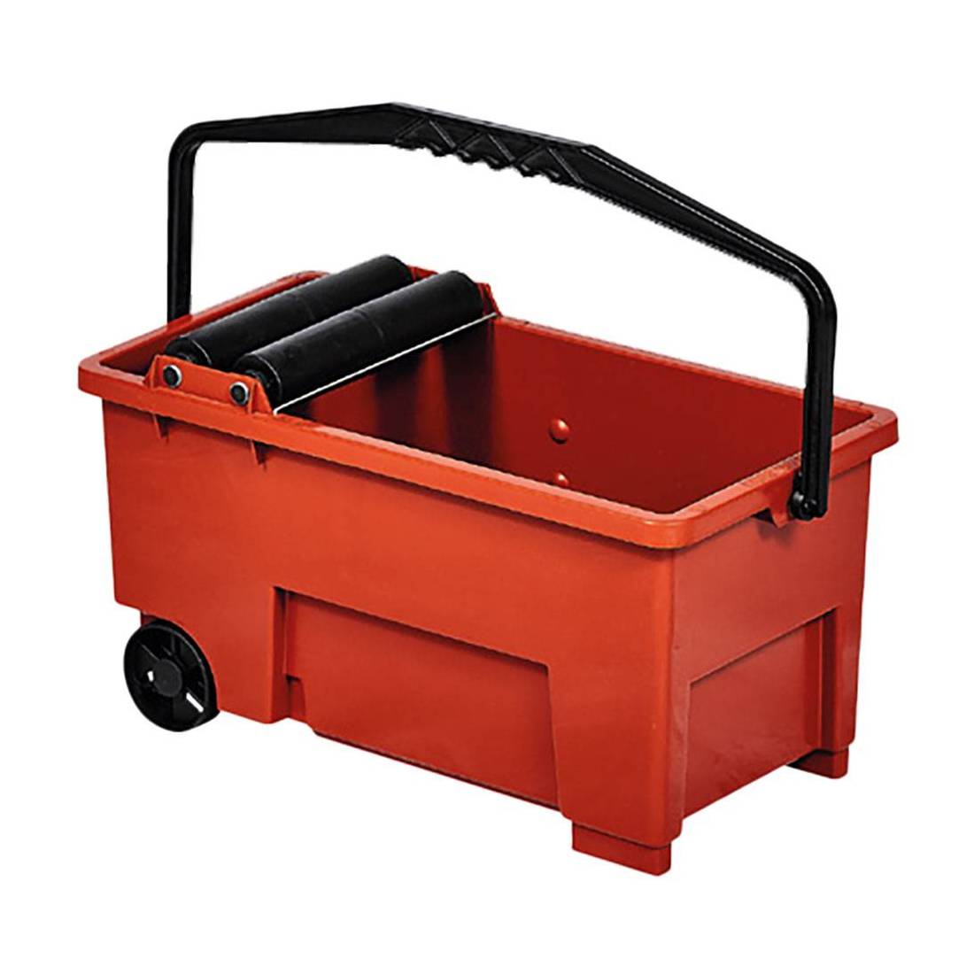 Vasca in plastica antiurto, su due ruote più due piedi. Due rulli in plastica su boccole antiusura e griglia in plastica.