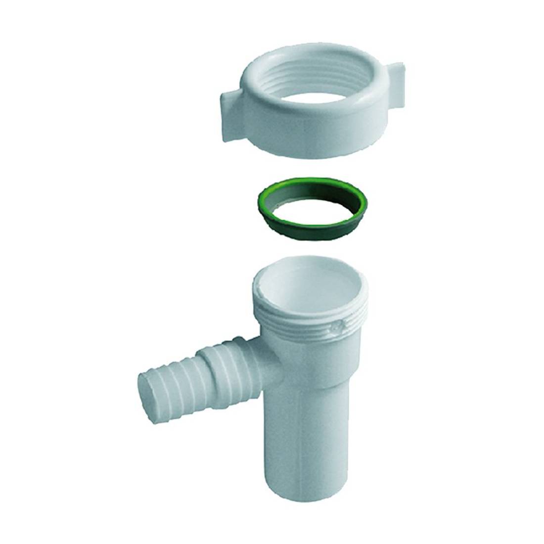 Per sifone. Con deflettore antireflusso, completo di dado e guarnizione. In polipropilene.