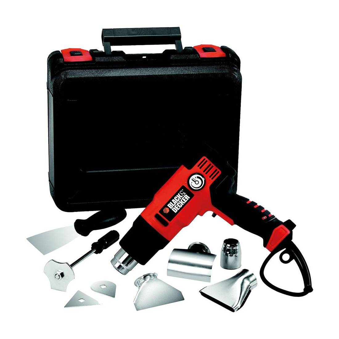 Doppia regolazione del calore: prima posizione 65°C, seconda posizione 645°C, doppia regolazione del flusso aria (360/720 lt/min). Impugnatura ergonomica, sistema 'safety' anti-surriscaldamento, possibilità di uso stazionario. In dotazione 8 accessori misti: bocchetta riflettente, bocchetta per vetro, cono di riduzione, bocchetta larga, raschietto piatto da 50 mm, raschietto a mano, raschietto universale, raschietto triangolare. In valigetta.