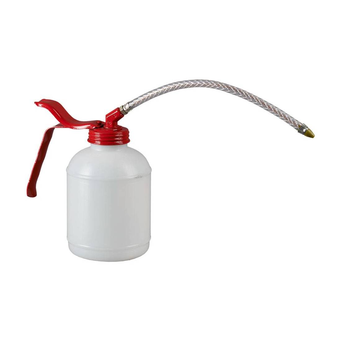 Contenitore in polietilene alta densita', canna flessibile in PVC. Pompa in polietilene.